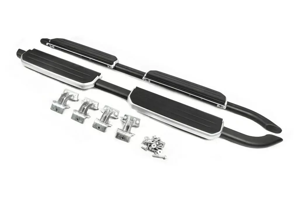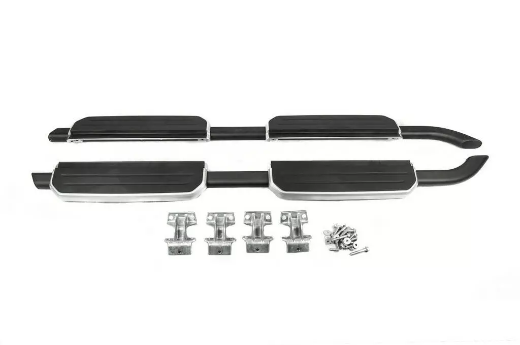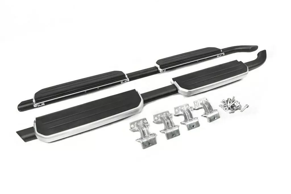 - Комплектация: 2 подножки черного цвета с серыми вставками, монтажный набор