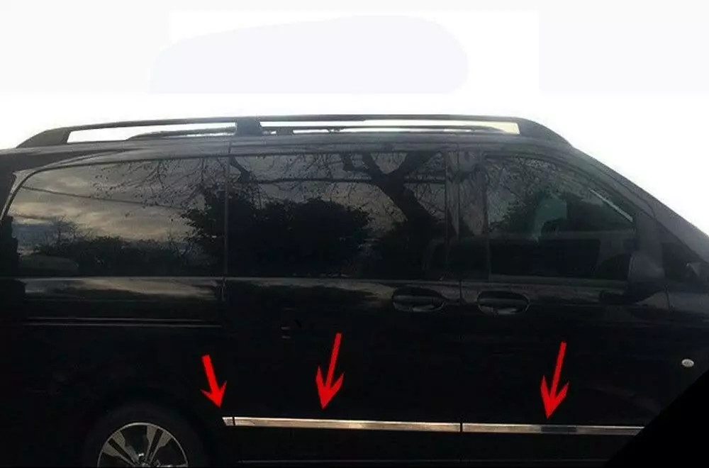 Молдинг дверний (6 частин, нержавійка) Коротка/Середня, 1 бічні двері для Mercedes Vito / V-class W447 2014-2024 рр