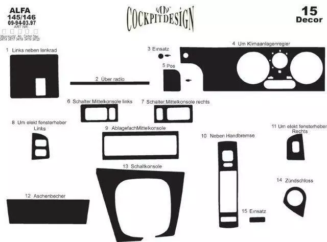 Накладки на панель (145 і 146 альфа) Дерево для Alfa Romeo 145/146 1994-2001 рр
