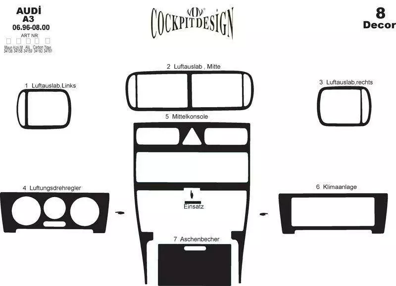 Накладки на панель (1996-2000) Темне дерево для Ауди A3 рр