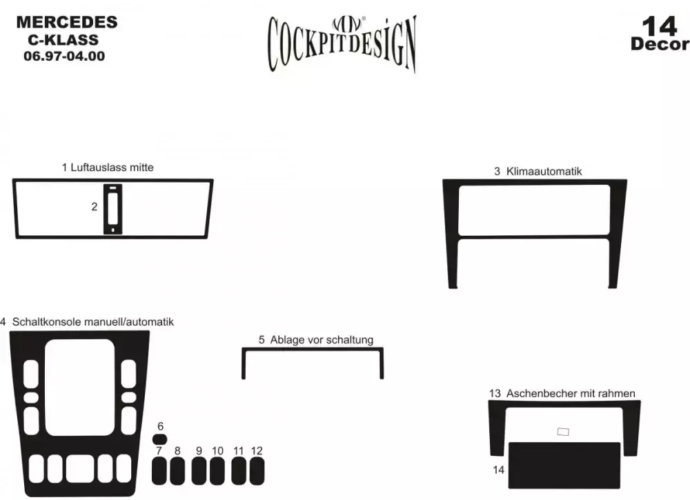 Накладки на панель (1997-2000) Алюминий для Mercedes C-class W202,