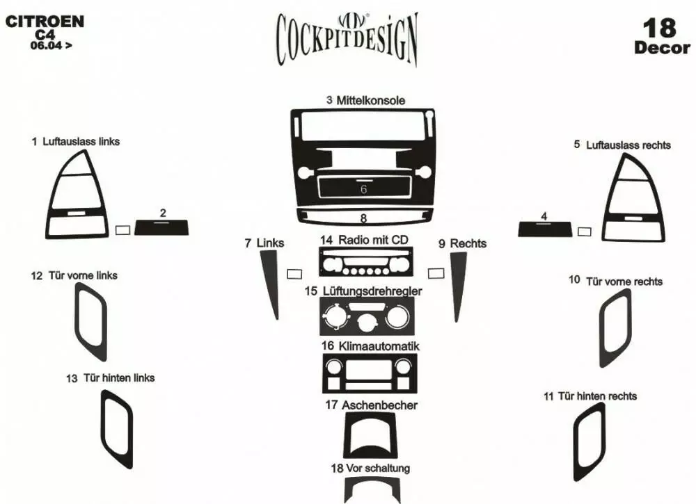 Накладки на панель Алюміній для Citroen C-4 2005-2010 рр