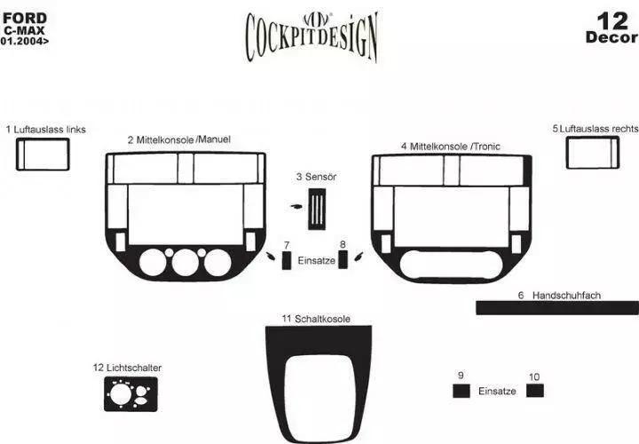 Накладки на панель Алюміній для Ford C-Max 2004-2010 рр