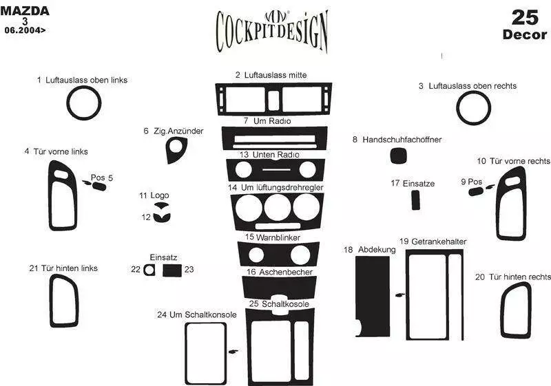 Накладки на панель Алюміній для Mazda 3 2003-2009 рр