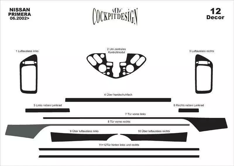 Накладки на панель Алюміній для Nissan Primera P12 2003-2024 рр