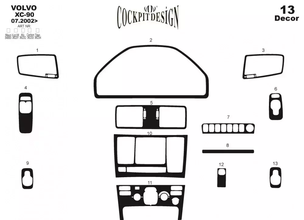 Накладки на панель Алюміній для Volvo XC90 2002-2014 рр