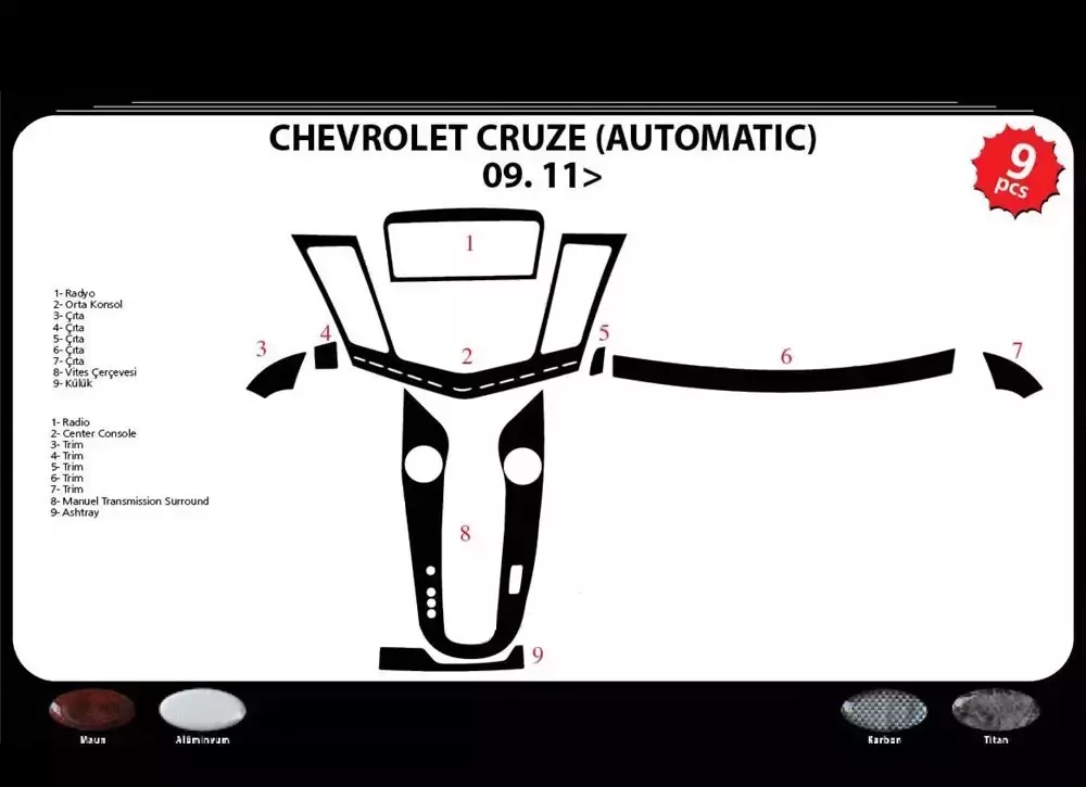 Накладки на панель (автомат) Титан для Chevrolet Cruze 2009-2015
