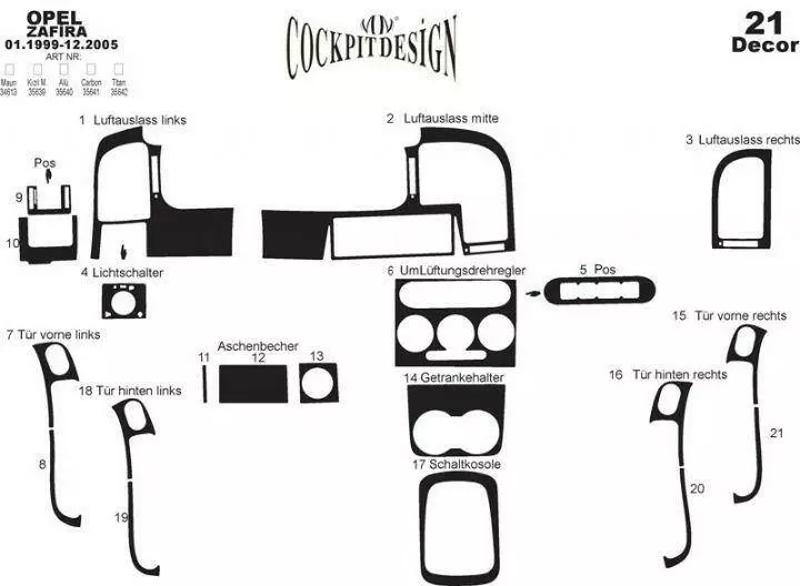 Накладки на панель Дерево для Opel Zafira A 1998-2005 рр