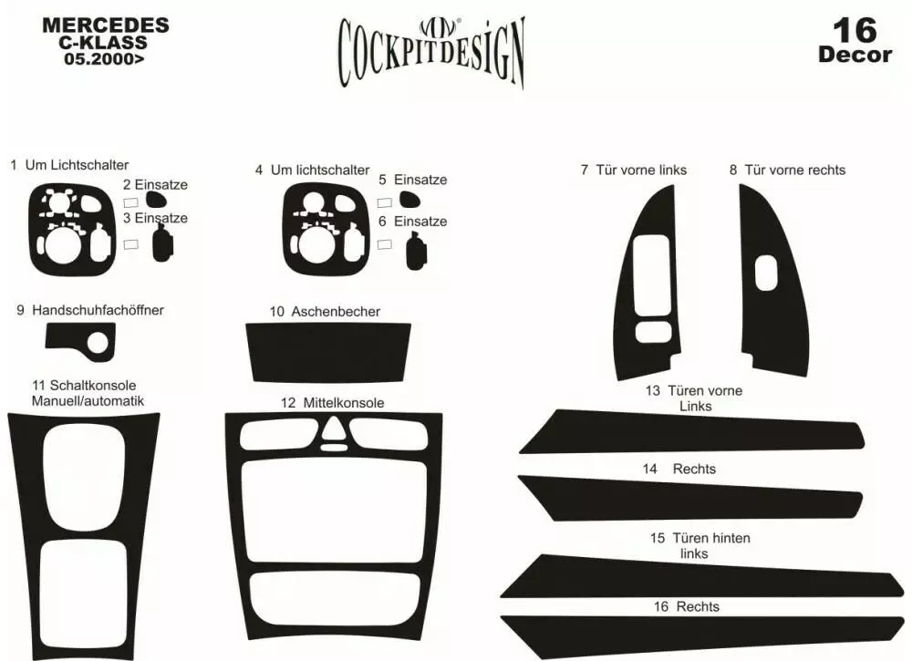Накладки на панель для Mercedes C-class W203 2000-2007рр