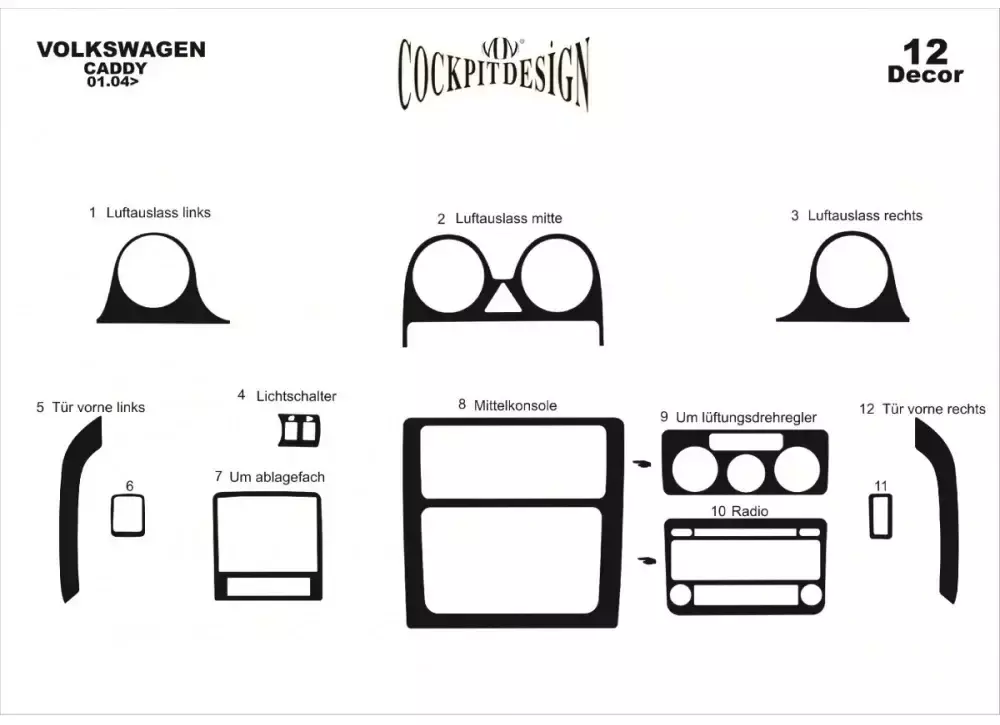 Накладки на панель Карбон для Volkswagen Caddy 2004-2010 рр