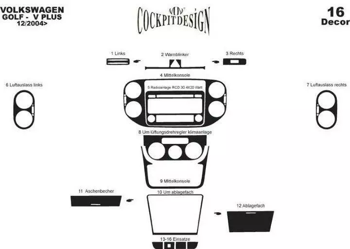 Накладки на панель Карбон для Volkswagen Golf Plus