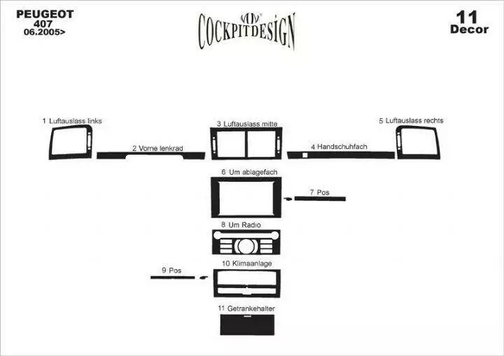 Накладки на панель (Kit-1) Дерево для Peugeot 407