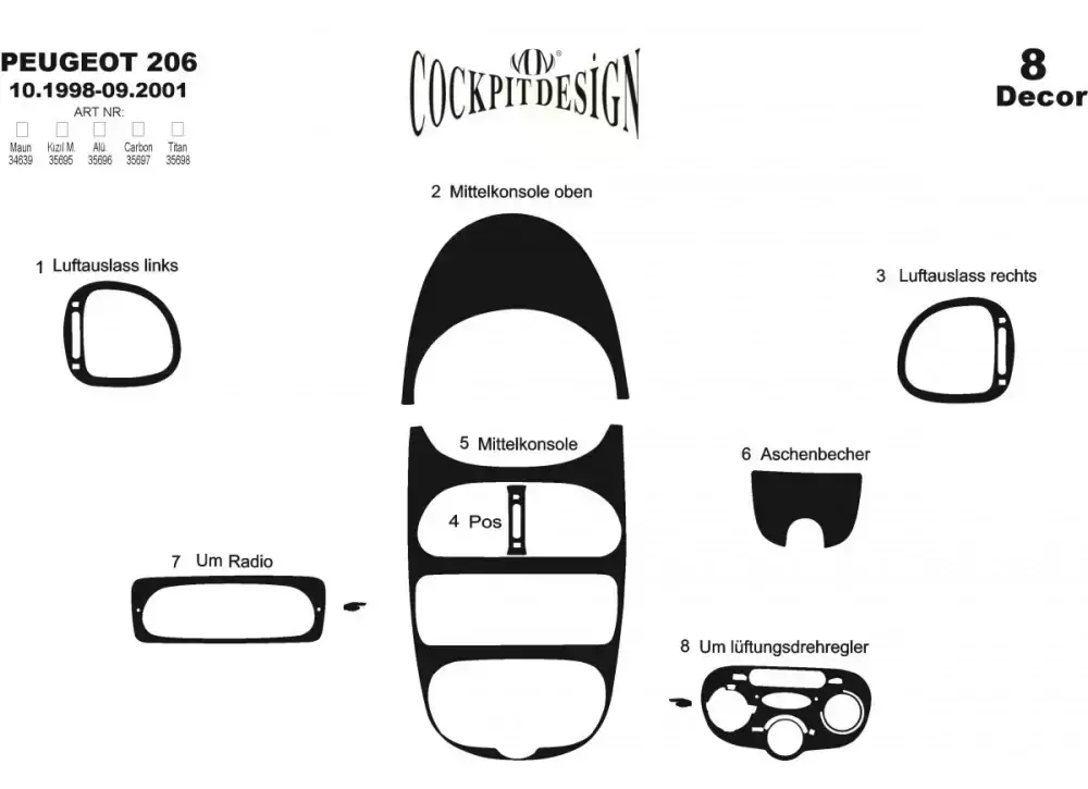 Накладки на панель (Meric, 1998-2001) Титан для Peugeot 206, Тюнинг