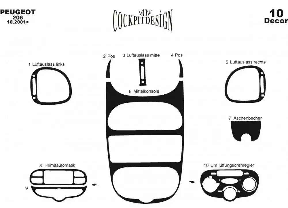 Накладки на панель (Meric, 2001-2024) Чорний для Peugeot 206