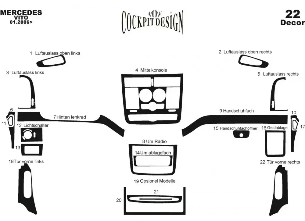 Накладки на панель Meric (передня частина) 2006-2015, Карбон для Mercedes Viano рр