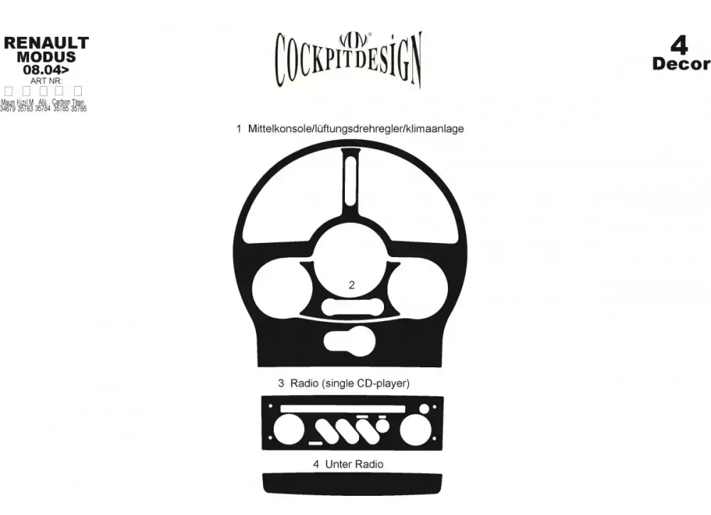 Накладки на панель (Meric, Туреччина) Карбон для Renault Modus 2005-2012 рр