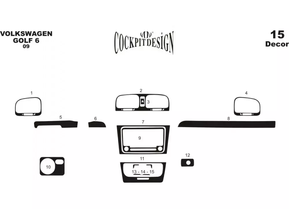 Накладки на панель (основний) Чорний колір для Volkswagen Golf 6