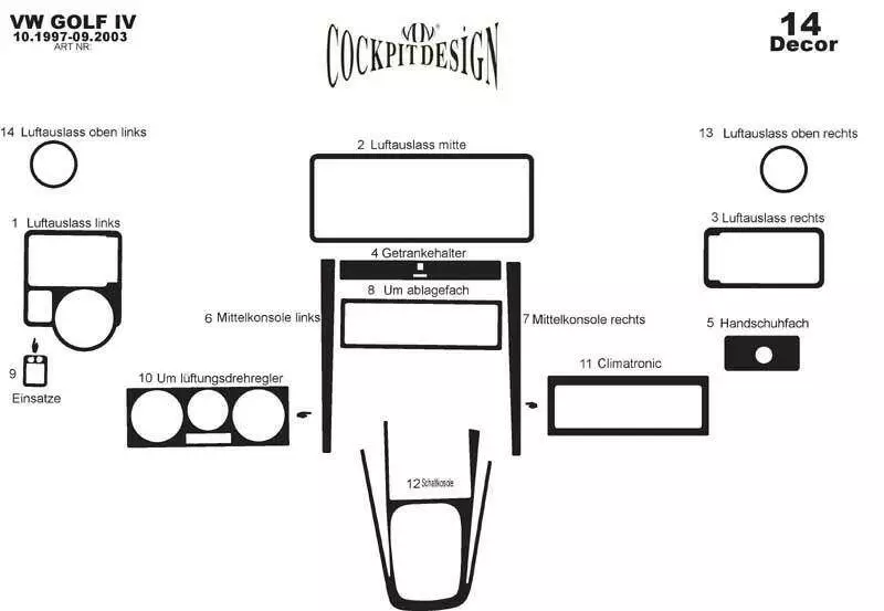 Накладки на панель Титан для Volkswagen Golf 4