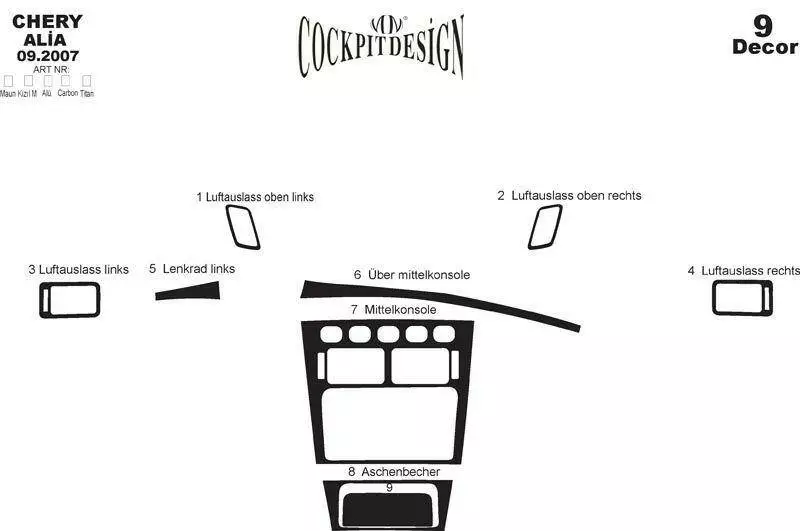 Накладки на торпеду Титан для Chery Elara - Alia - Fora - A5 2006-2024 рр