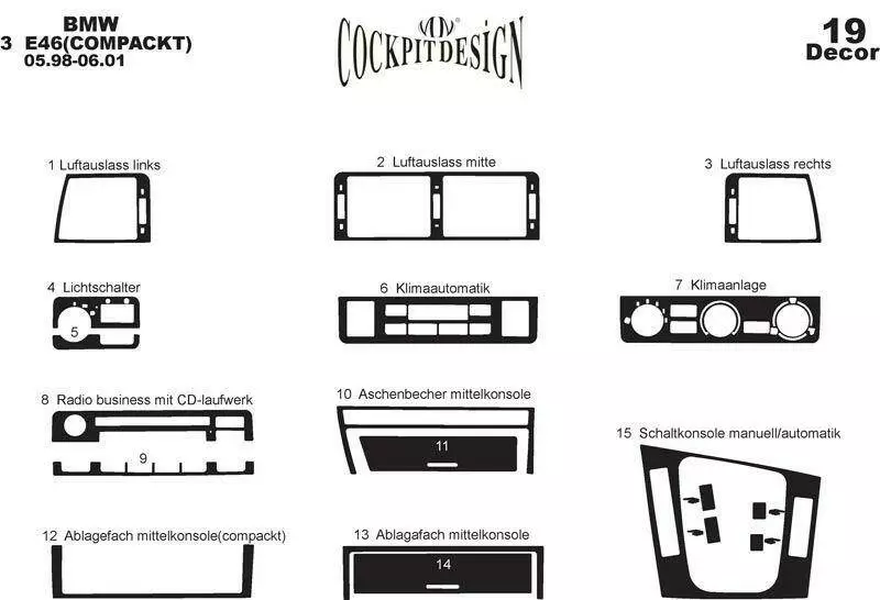 Накладки в салон (Compact) Карбон для BMW 3 серія E-46 1998-2006 рр