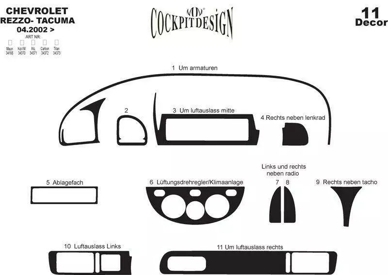 Накладки в салон Карбон для Chevrolet Tacuma / Rezzo