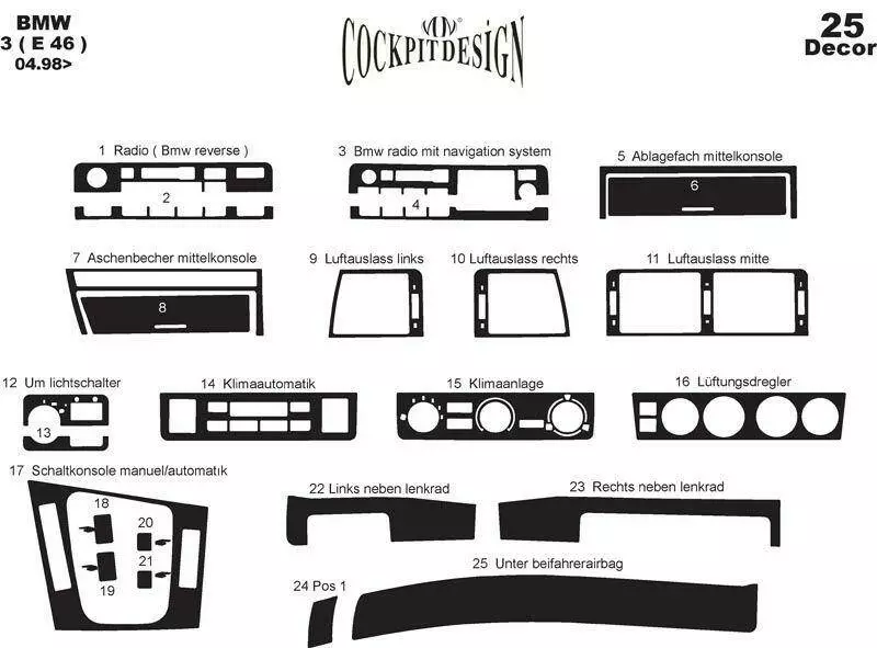 Накладки в салон Темне дерево для BMW 3 серія E-46 1998-2006 рр